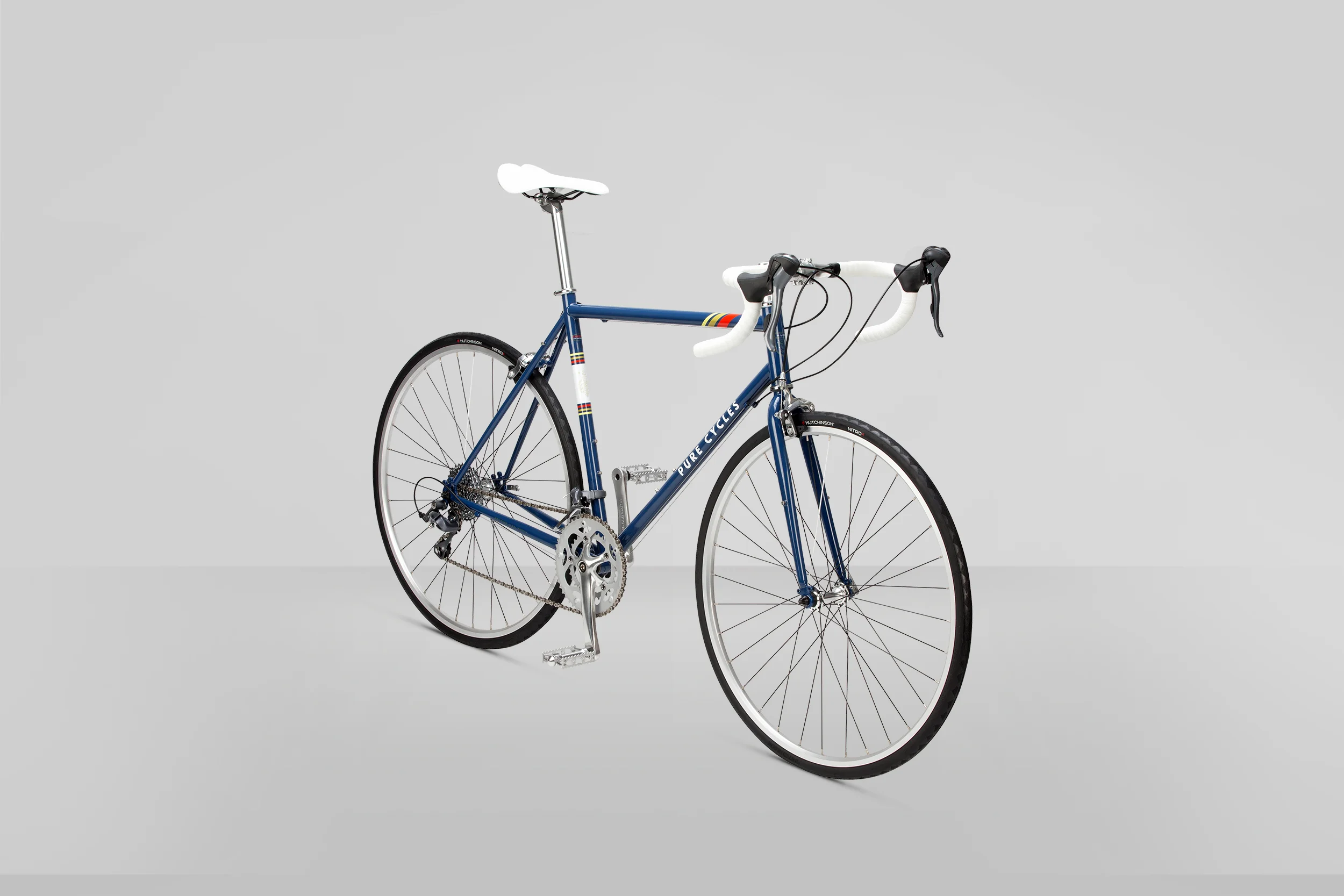 The all-new Pure Cycles Bonette. Classic road bike looks, with modern geometry and engineering. Working with Product Manager Wayne Doran, we had a heads-up as to what the geometry and components where going to be. We discussed how this bike would be a simple road machine, similar to the bikes we grew up with. It was through this discussions that we realized that these models should have a class, throw-back flare. Referencing classic road bike designs, we settled on some vintage elements, with a modern vibe. Offered in a bold blue, and a "classy" black and gold.